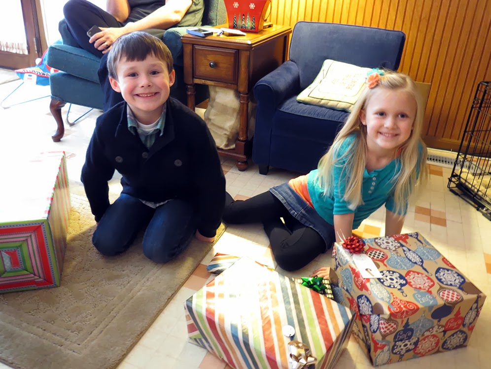 I woke Violet up and we snuck downstairs. She watched as Santa picked up the elves said something to them and then put them in his bag. She's convinced she saw them move.